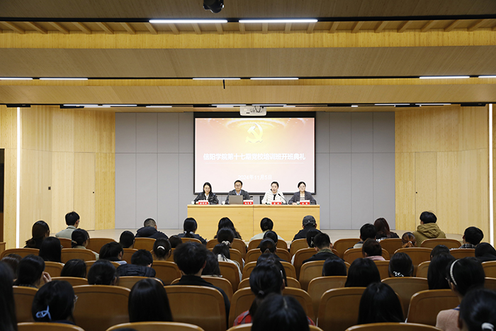 为深入学习贯彻习近平新时代中国特色社会主义思想和党的二十大及二十届二中、三中全会精神,切实加强党员发展对象思想政治理论水平建设,11月5日下午,信阳学院第十七期党员发展对象培训班开班典礼在图书馆101报告厅举行。学校纪委书记、校长助理杨高伟出席,党群有关职能部门负责人、各党总支组织员和党员发展对象师生代表在主会场参加,各党总支党员发展对象学员于分会场参加。校党委办公室主任娄琪主持了开班典礼。